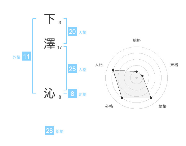下澤 沁さんの総格は28画の1点!