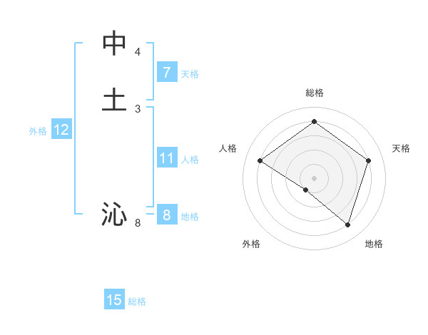 中土 沁さんの総格は15画の4点!
