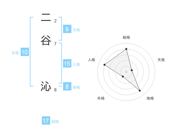 二谷 沁さんの総格は17画の4点!