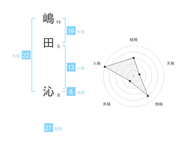 嶋田 沁さんを姓名の画数から五運を鑑定