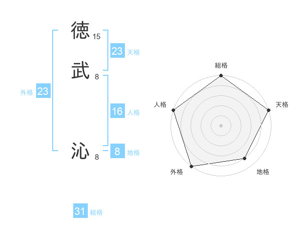 徳武 沁さんの総格は31画の5点!