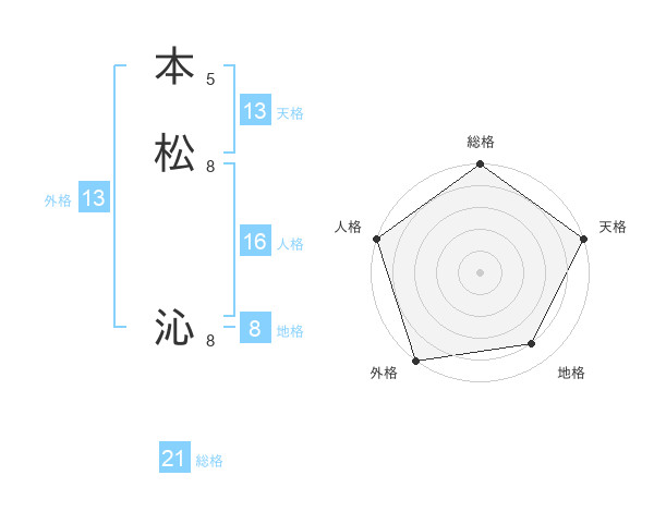 本松 沁さんの総格は21画の5点!