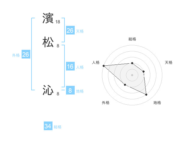 濱松 沁さんの総格は34画の2点!