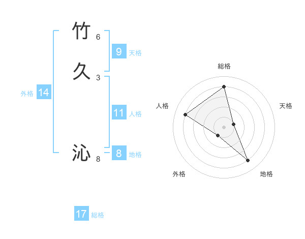 竹久 沁さんの総格は17画の4点!