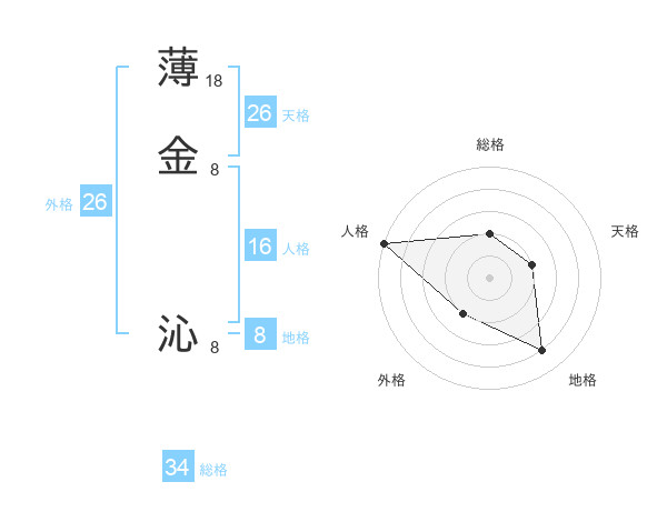 薄金 沁さんの総格は34画の2点!