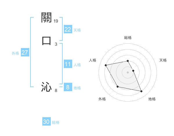 關口 沁さんの総格は30画の2点!