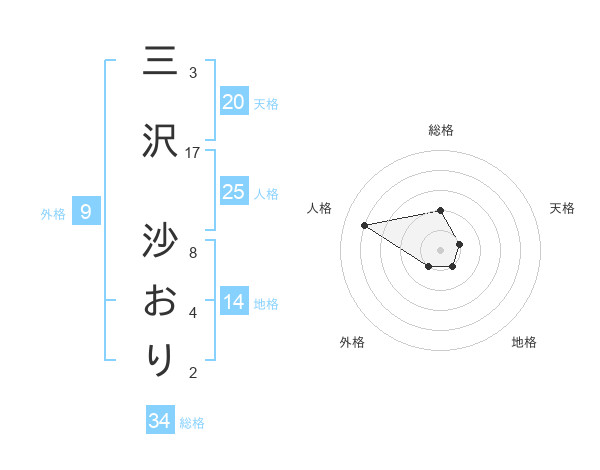 三沢 沙おりさんを姓名の画数から五運を鑑定
