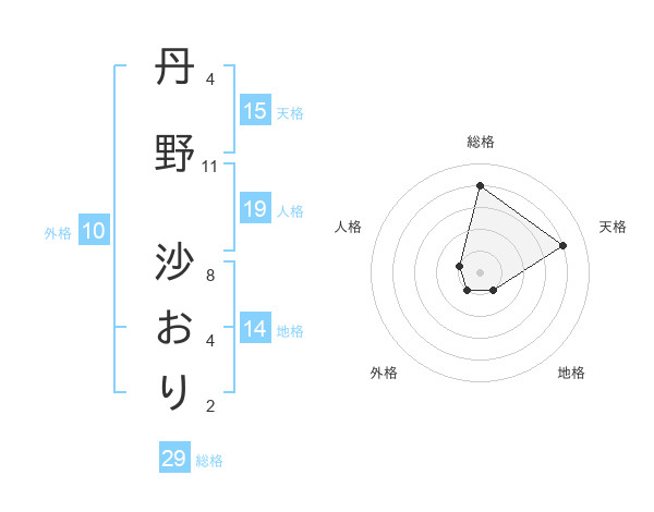 丹野 沙おりさんの天格は15画の4点!