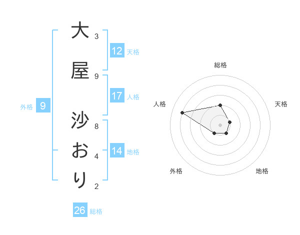 大屋 沙おりさんの天格は12画の1点!