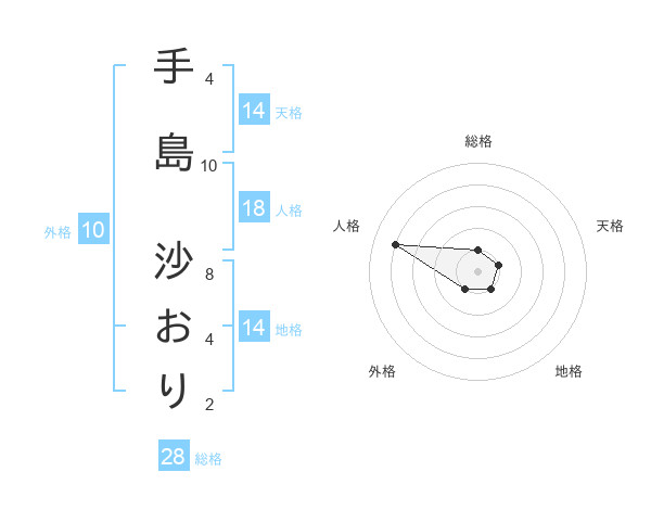 手島 沙おりさんを姓名の画数から五運を鑑定