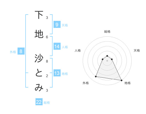 下地 沙とみさんを姓名の画数から五運を鑑定