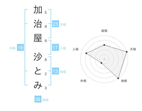 加治屋 沙とみさんを姓名の画数から五運を鑑定