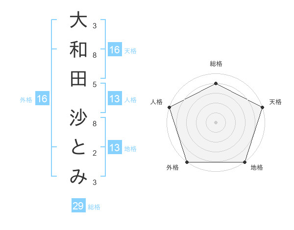 大和田 沙とみさんを姓名の画数から五運を鑑定