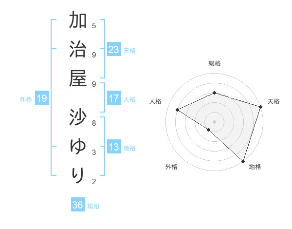 加治屋 沙ゆりさんを姓名の画数から五運を鑑定