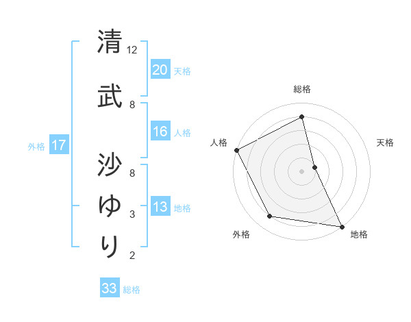 清武 沙ゆりさんを姓名の画数から五運を鑑定