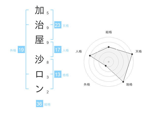 加治屋 沙ロンさんの天格は23画の5点!