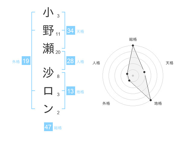 小野瀬 沙ロンさんを姓名の画数から五運を鑑定
