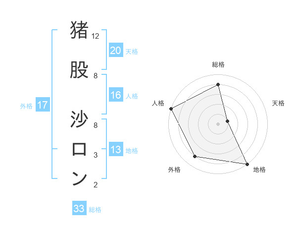 猪股 沙ロンさんを姓名の画数から五運を鑑定