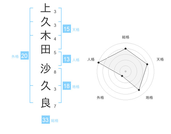 上久木田 沙久良さんの総格は33画の4点
