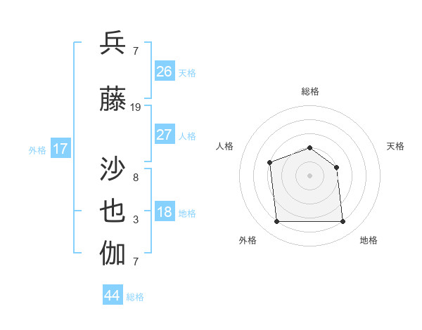 兵藤 沙也伽さんを姓名の画数から五運を鑑定