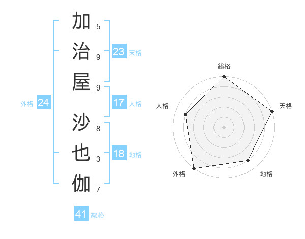 加治屋 沙也伽さんの天格は23画の5点!