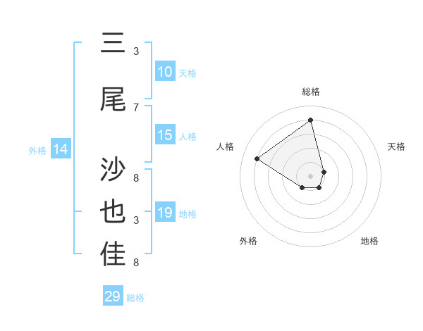 三尾 沙也佳さんの総格は29画の4点!