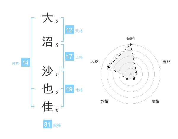 大沼 沙也佳さんの総格は31画の5点!