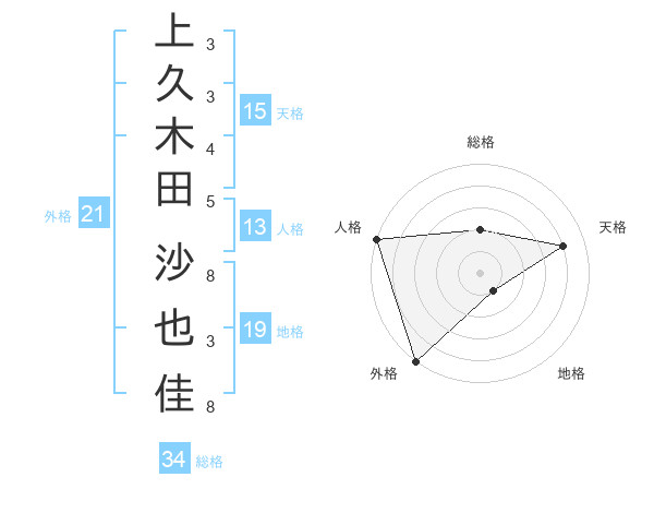 上久木田 沙也佳さんを姓名の画数から五運を鑑定