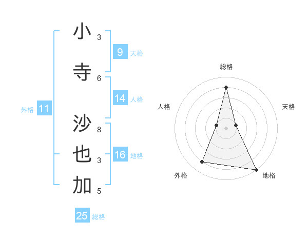小寺 沙也加さんを姓名の画数から五運を鑑定