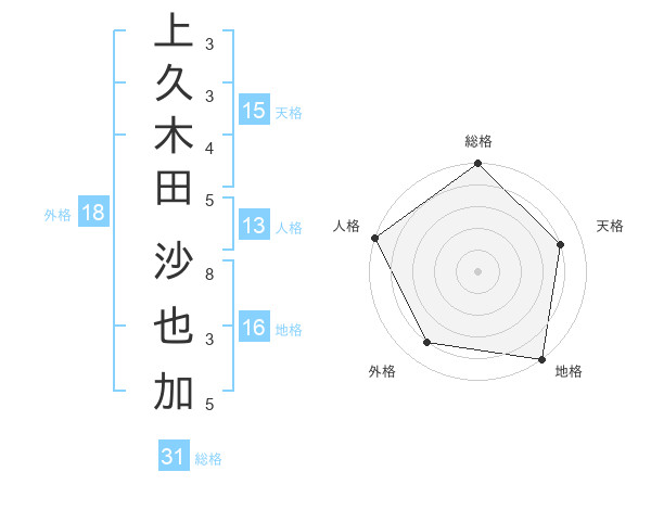 上久木田 沙也加さんを姓名の画数から五運を鑑定