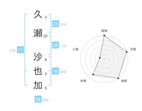 久瀬 沙也加さんを姓名の画数から五運を鑑定