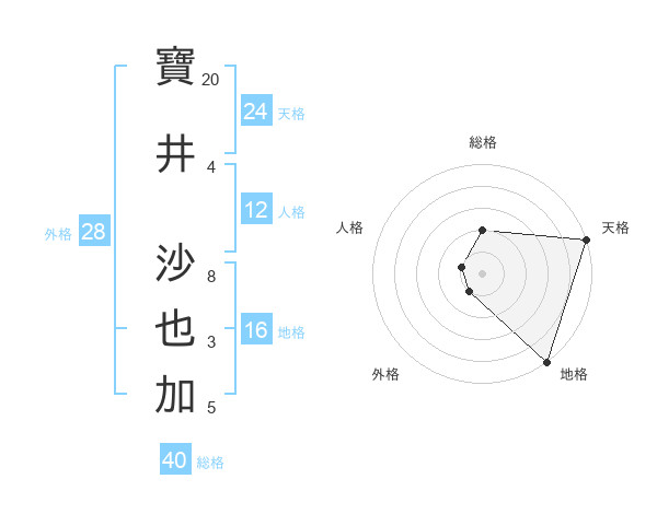 寶井 沙也加さんの天格は24画の5点