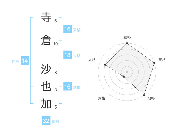 寺倉 沙也加さんの天格は16画の5点!