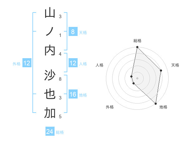 山ノ内 沙也加さんの外格は12画の1点!