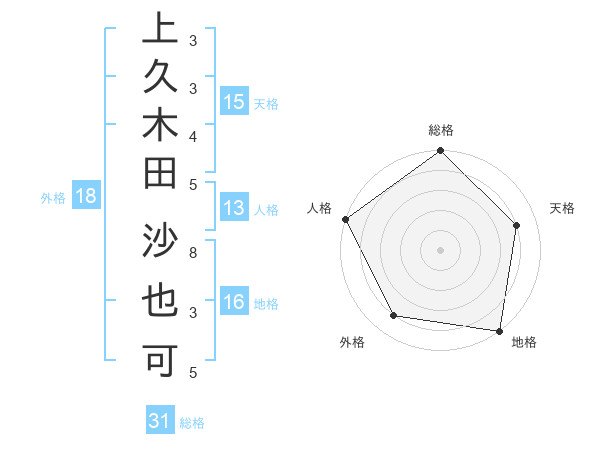 上久木田 沙也可さんを姓名の画数から五運を鑑定