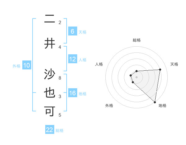 二井 沙也可さんを姓名の画数から五運を鑑定