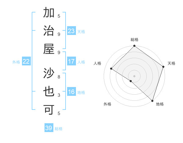 加治屋 沙也可さんの天格は23画の5点!