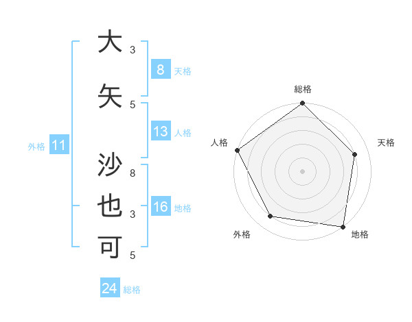 大矢 沙也可さんを姓名の画数から五運を鑑定