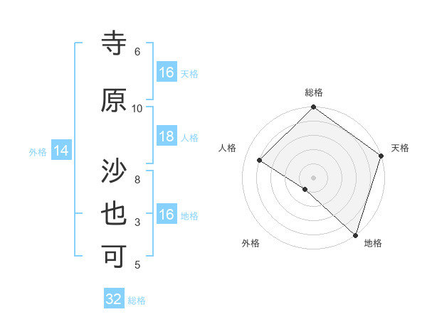 寺原 沙也可さんの天格は16画の5点!