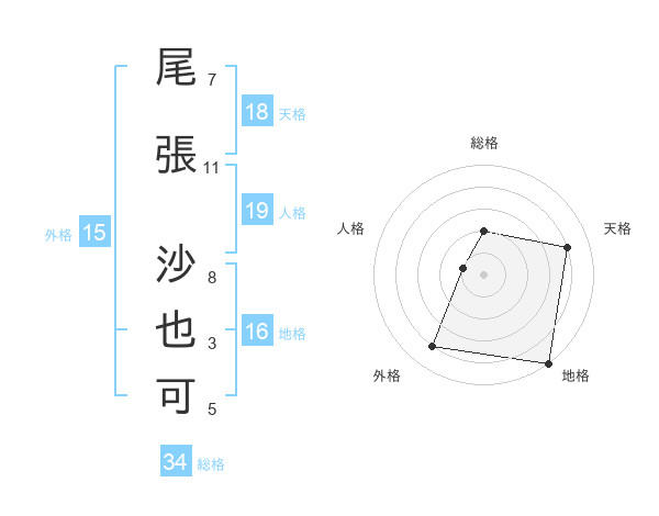 尾張 沙也可さんを姓名の画数から五運を鑑定