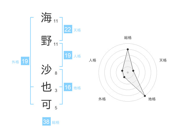 海野 沙也可さんの総格は38画の4点!