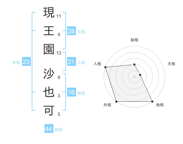 現王園 沙也可さんの外格は23画の5点!