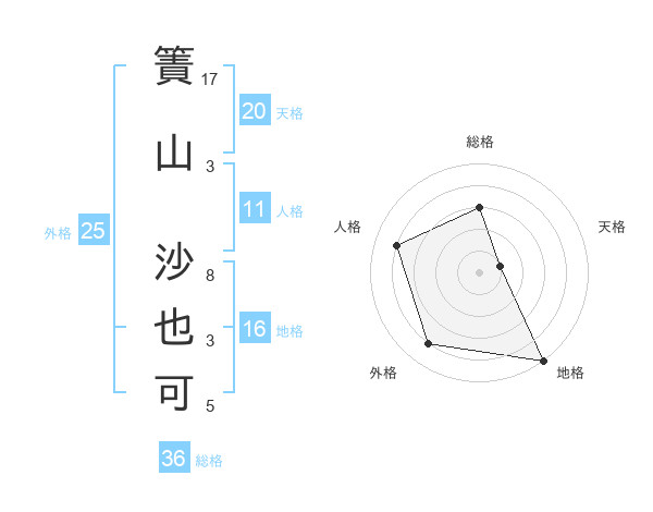 簀山 沙也可さんを姓名の画数から五運を鑑定