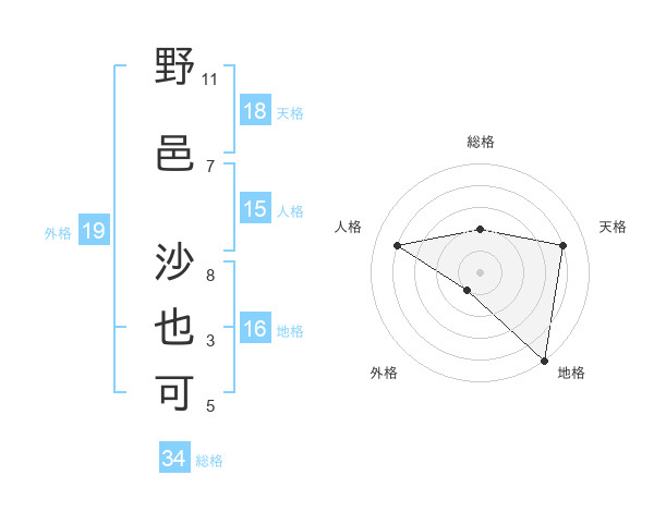 野邑 沙也可さんの天格は18画の4点!