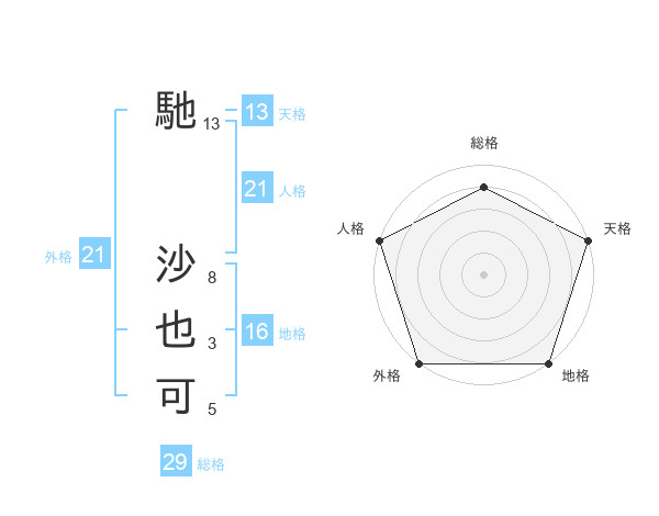 馳 沙也可さんを姓名の画数から五運を鑑定