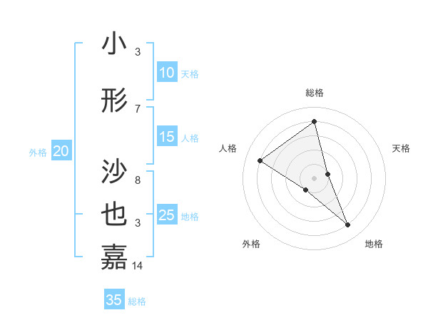 小形 沙也嘉さんの総格は35画の4点!