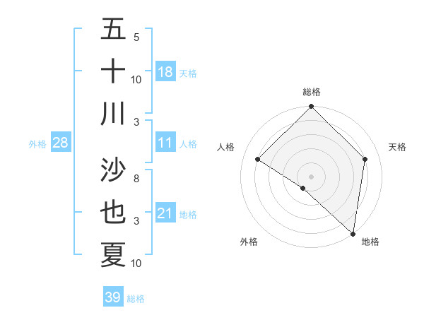 五十川 沙也夏さんを姓名の画数から五運を鑑定