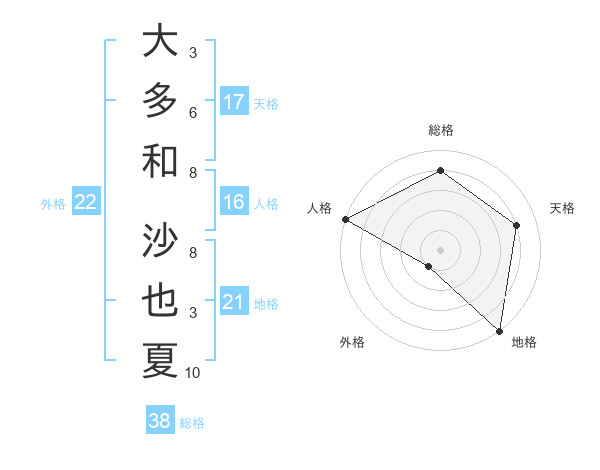 大多和 沙也夏さんの総格は38画の4点