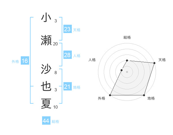 小瀬 沙也夏さんの外格は16画の5点!