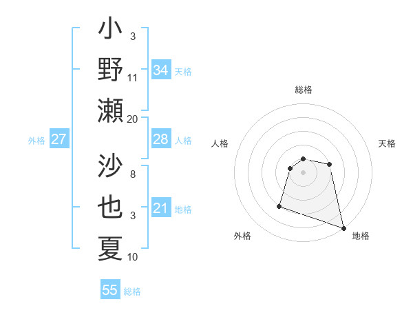 小野瀬 沙也夏さんを姓名の画数から五運を鑑定